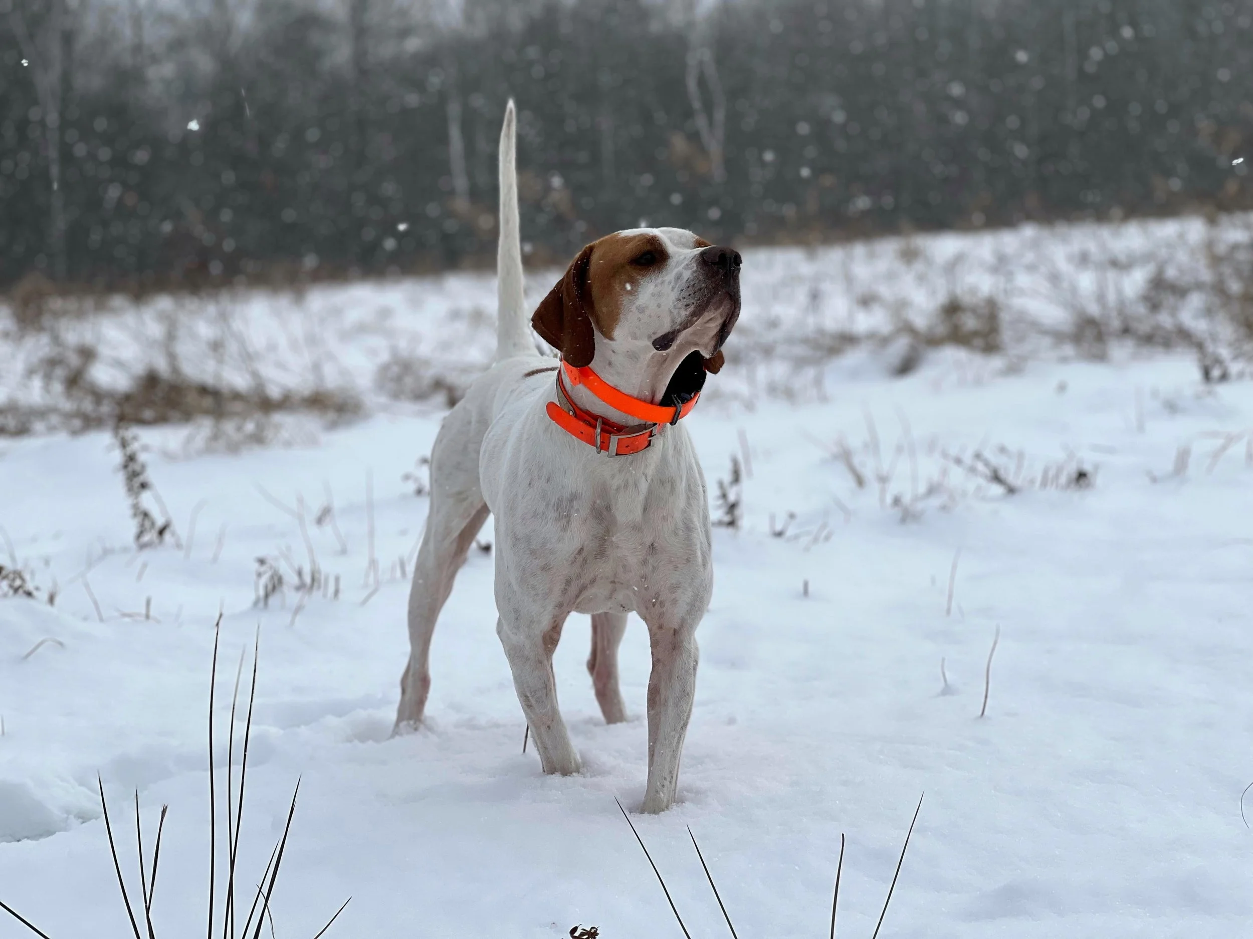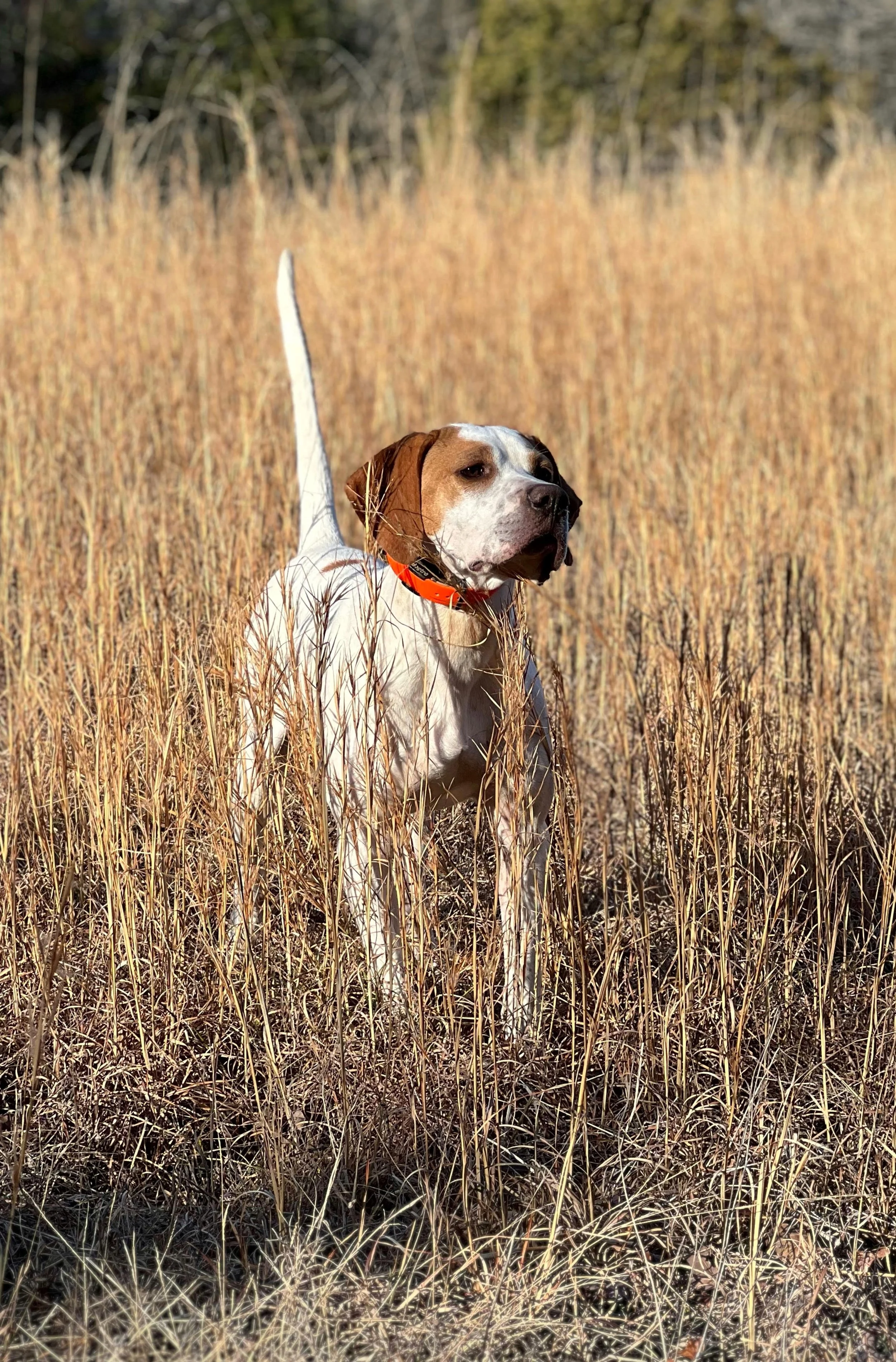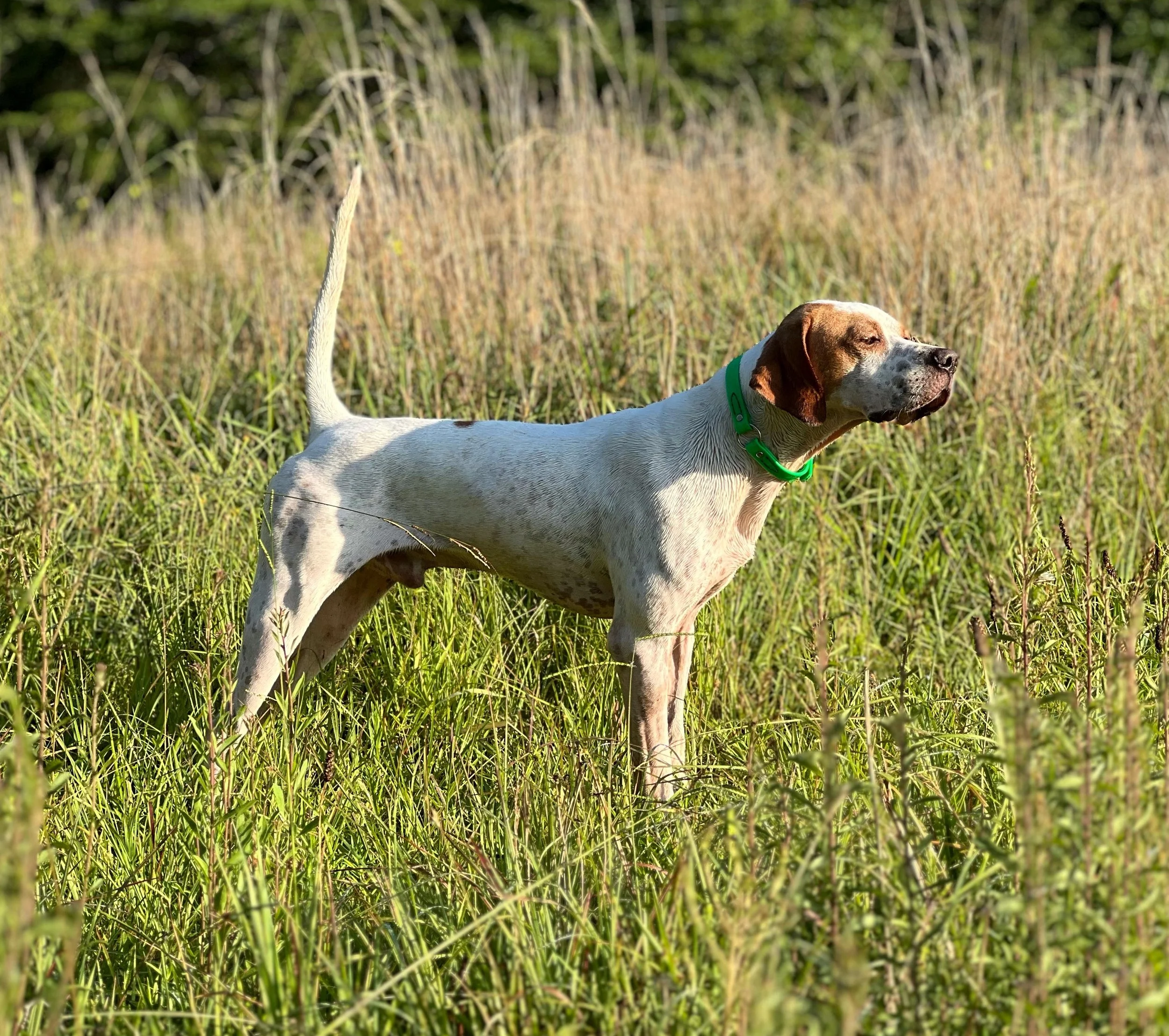 Kate’s Striking Elhew Seafare - Cruze comes down from Bob Wehle’s famous bloodline of Elhew pointers. Cruze shows a lot of promise as a young bird dog. He has a great disposition, very willing to please, he works in close to mid range for a foot hunter, and has a 100% natural retrieve. He was bred by Justin Smith of Kate’s Kennel.